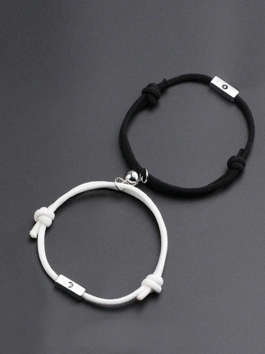 Pulsera para parejas con detalle de luna y sol en color negra y blanca 2 piezas